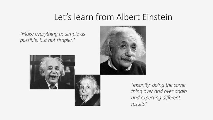 A great source for thoughts are the blog posts from Jos Voskuil. They inspire and challenge. What I really like about them is that they also seek pragmatic answers. Currently much of the content in the blogs is around how we can make concepts like Digital Twin, Digital Thread, Model Based Enterprise and Smart Manufacturing happen and become low risk programs widely adopted. Some clever advise can for sure be found in the great quotes from one of my favourites, Albert Einstein, see picture.