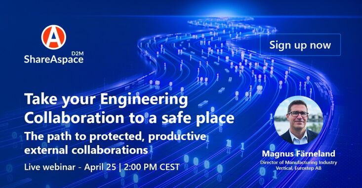At Eurostep, we demonstrated in previous webinars how secure collaboration can be managed during the procurement and manufacturing phases of a product’s lifecycle using our ShareAspace Design to Manufacturing product. But what about the earlier phases, such as during conceptual or detailed design? Is it easier or more complicated then? Who are the participants in such collaborations? What is the real value of keeping track of all shared data in a phase where nothing is definitively decided and the impact of a small design change is minimal?