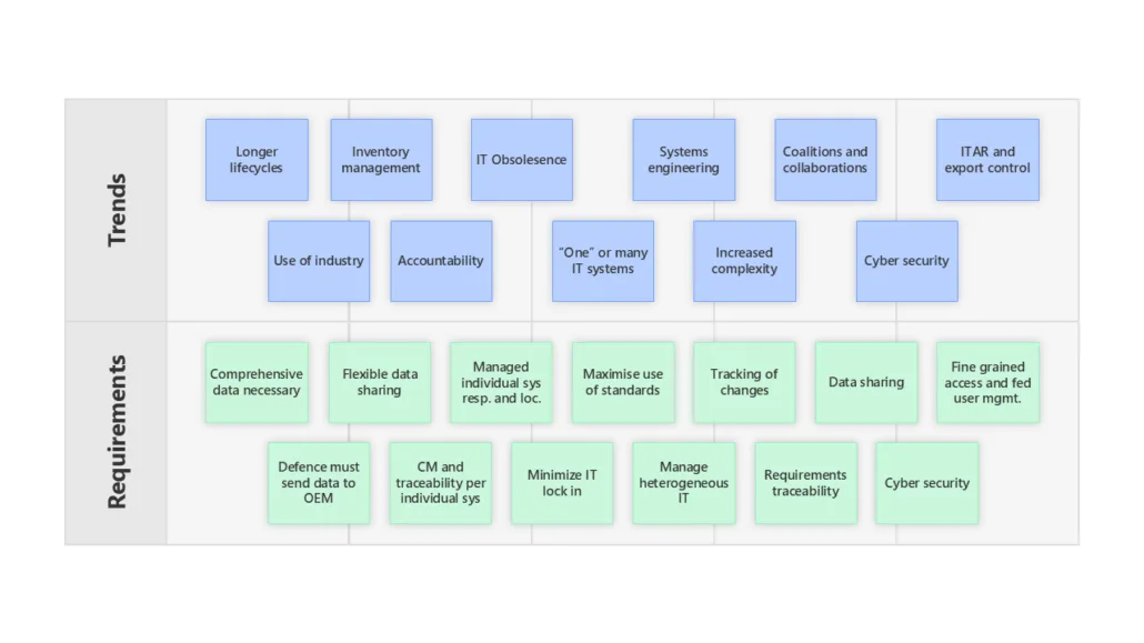 Ministries of defence face a number of challenges that put requirements on how product information is managed, communicated, and shared with different stakeholders during the lifecycle of products. This paper highlights the main requirements, trends, and business drivers, all derived from Eurostep’s experience.
